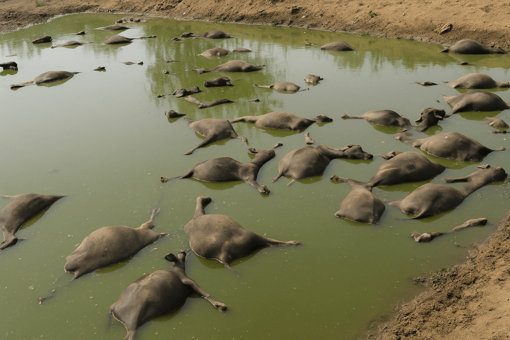 तालाब में तैरती लाशें और डूबती उम्मीदें: जलवाड़ा की 80 भैंसों की मौत एक चेतावनी है